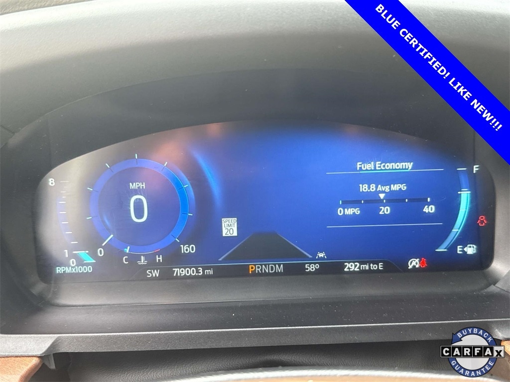 Check out all these great options Equipment Group 701A, Premium Technology Package (10.1" LCD Capacitive Portrait Touchscreen, 2 Additional Speakers, and Mesa Del Rio Lthr Htd/Vent Capt's Chairs), 3rd row seats: bench, Heated front seats, Heated rear seats, Heated steering wheel, Memory seat, Navigation System, Power driver seat, Power Liftgate, Power passenger seat, Rear air conditioning, SYNC 3 Communications & Entertainment System, SYNC 3/Apple CarPlay/Android Auto, Twin Panel Moonroof, Ventilated front seats, 12 Speakers, 3.31 Non-Limited-Slip Axle Ratio, 4-Wheel Disc Brakes, ABS brakes, Air Conditioning, Alloy wheels, AM/FM radio: SiriusXM, Auto High-beam Headlights, Auto-dimming door mirrors, Auto-dimming Rear-View mirror, Automatic temperature control, Brake assist, Bumpers: body-color, Compass, Delay-off headlights, Driver door bin, Driver vanity mirror, Dual front impact airbags, Dual front side impact airbags, Electronic Stability Control, Emergency communication system: SYNC 3 911 Assist, Exterior Parking Camera Rear, FordPass Connect, Four wheel independent suspension, Front & Second Row Floor Liners (16B), Front anti-roll bar, Front Bucket Seats, Front Center Armrest, Front dual zone A/C, Front fog lights, Front reading lights, Fully automatic headlights, Garage door transmitter: HomeLink, Genuine wood dashboard insert, Heated door mirrors, Illuminated entry, Knee airbag, Leather steering wheel, Low tire pressure warning, Occupant sensing airbag, Outside temperature display, Overhead airbag, Overhead console, Panic alarm, Passenger door bin, Passenger vanity mirror, Power door mirrors, Power steering, Power windows, Radio data system, Radio: B&O Sound System by Bang & Olufsen, Rain sensing wipers, Rear anti-roll bar, Rear reading lights, Rear window defroster, Rear window wiper, Remote keyless entry, Roof rack: rails only, Security system, SelectShift Capability w/Paddle Shifters, Speed control, Speed-sensing steering, Speed-Sensitive Wipers, Split folding rear seat, Spoiler, Steering wheel mounted audio controls, Tachometer, Telescoping steering wheel, Tilt steering wheel, Traction control, Trip computer, Turn signal indicator mirrors, Variably intermittent wipers, Voice-Activated Touchscreen Navigation System, and Wheels: 20" 10-Spoke Aluminum w/KR Center Cap.