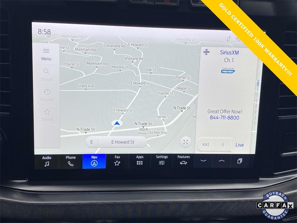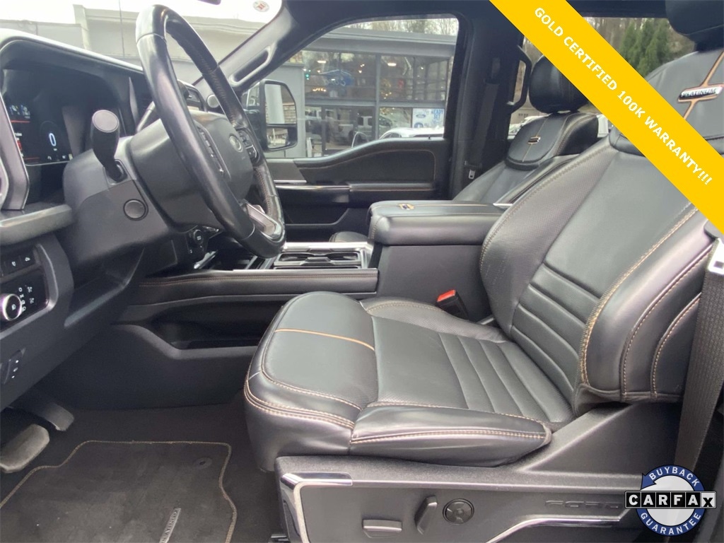 Check out all these great options 5th Wheel/Gooseneck Hitch Prep Package, FX4 Off-Road Package (Hill Descent Control, Off-Road Specifically Tuned Shock Absorbers, and Unique FX4 Off-Road Box Decal), Navigation system: Connected Navigation (includes complimentary 1-year trial), 4-Wheel Disc Brakes, ABS brakes, Adjustable pedals, Air Conditioning, Alloy wheels, AM/FM radio: SiriusXM with 360L, Auto High-beam Headlights, Auto tilt-away steering wheel, Auto-dimming Rear-View mirror, Automatic temperature control, Brake assist, Compass, Delay-off headlights, Driver door bin, Driver vanity mirror, Dual front impact airbags, Dual front side impact airbags, Electronic Stability Control, Emergency communication system: SYNC 4 911 Assist, Engine Block Heater, Exterior Parking Camera Rear, Flow-Through Console, Front & Rear Wheel Well Liners (Pre-Installed), Front anti-roll bar, Front Bucket Seats, Front Center Armrest, Front dual zone A/C, Front fog lights, Front reading lights, Fully automatic headlights, Garage door transmitter, Gooseneck Hitch Kit (Pre-Installed), Heated door mirrors, Heated front seats, Heated rear seats, Heated steering wheel, Illuminated entry, Leather steering wheel, LED Roof Clearance Lights, Low tire pressure warning, Memory seat, Outside temperature display, Overhead airbag, Overhead console, Panic alarm, Passenger door bin, Passenger vanity mirror, Pedal memory, Power door mirrors, Power driver seat, Power passenger seat, Power steering, Power windows, Radio: B&O Unleashed Sound System by Bang & Olufsen, Rain sensing wipers, Rapid-Heat Supplemental Cab Heater, Rear reading lights, Rear seat center armrest, Rear step bumper, Rear window defroster, Remote keyless entry, Security system, SiriusXM Radio w/360L, Speed control, Split folding rear seat, Steering wheel memory, Steering wheel mounted audio controls, SYNC 4 w/Enhanced Voice Recognition, Tachometer, Telescoping steering wheel, Tilt steering wheel, Traction control, Trip computer, Turn signal indicator mirrors, Twin Panel Power Moonroof, Variably intermittent wipers, and Ventilated front seats.