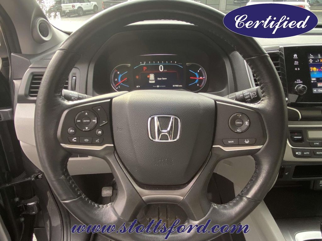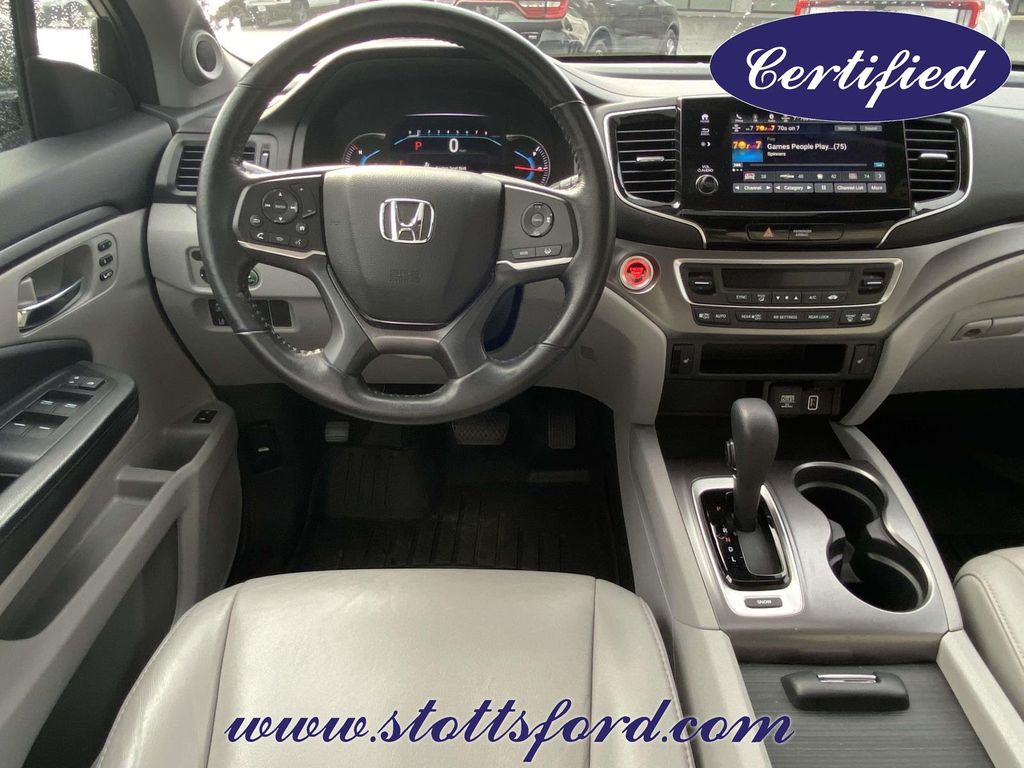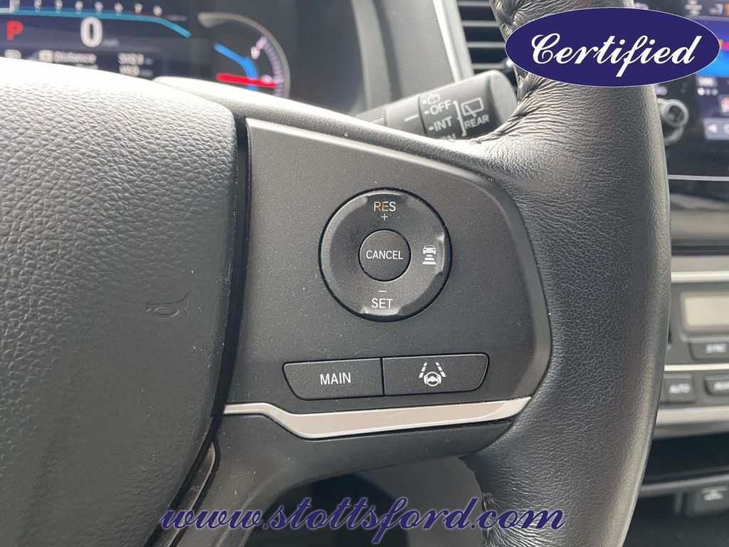 Check out all these great options Automatic temperature control, Blind Spot Information (BSI) System warning, Exterior Parking Camera Rear, Forward collision: Collision Mitigation Braking System (CMBS) + FCW mitigation, Front dual zone A/C, Lane departure: Lane Keeping Assist System (LKAS) active, Memory seat, Power driver seat, Power Liftgate, Power moonroof, 18" Machine-Finished Alloy Wheels, 3rd row seats: split-bench, 4-Wheel Disc Brakes, 4.25 Axle Ratio, 7 Speakers, A/V remote: CabinControl, ABS brakes, Air Conditioning, Alloy wheels, AM/FM radio: SiriusXM, Apple CarPlay/Android Auto, Auto High-beam Headlights, Auto-dimming Rear-View mirror, Brake assist, Bumpers: body-color, Delay-off headlights, Driver door bin, Driver vanity mirror, Dual front impact airbags, Dual front side impact airbags, Electronic Stability Control, Emergency communication system: HondaLink Assist, Four wheel independent suspension, Front anti-roll bar, Front Bucket Seats, Front Center Armrest, Front fog lights, Front reading lights, Fully automatic headlights, Garage door transmitter: HomeLink, Heated door mirrors, Heated Front Bucket Seats, Heated front seats, Illuminated entry, Leather Seat Trim, Leather Shift Knob, Low tire pressure warning, Occupant sensing airbag, Outside temperature display, Overhead airbag, Overhead console, Panic alarm, Passenger door bin, Passenger vanity mirror, Power door mirrors, Power passenger seat, Power steering, Power windows, Radio data system, Radio: 215-Watt Audio System, Rear air conditioning, Rear anti-roll bar, Rear reading lights, Rear seat center armrest, Rear window defroster, Rear window wiper, Reclining 3rd row seat, Remote keyless entry, Security system, Speed control, Speed-sensing steering, Speed-Sensitive Wipers, Split folding rear seat, Spoiler, Steering wheel mounted audio controls, Tachometer, Telescoping steering wheel, Tilt steering wheel, Traction control, Trip computer, Turn signal indicator mirrors, and Variably intermittent wipers.