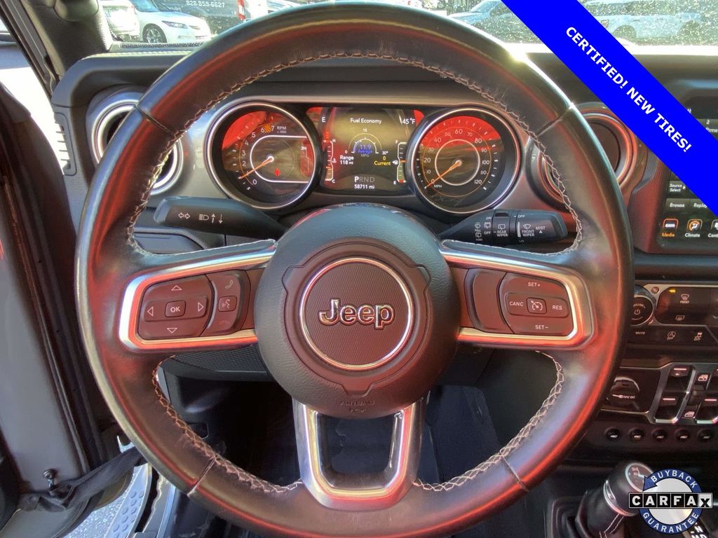 Check out all these great options 8.4" Radio & Premium Audio Group (1-Year SiriusXM Guardian Trial, 4G LTE Wi-Fi Hot Spot, 5-Year SiriusXM Traffic Service, 5-Year SiriusXM Travel Link Service, 8.4" Touchscreen Display, Alpine Premium Audio System, Auto-Dimming Rear-View Mirror, Emergency/Assistance Call, For Details, Visit DriveUconnect.com, GPS Navigation, HD Radio, Radio: Uconnect 4C Nav w/8.4" Display, SiriusXM Traffic Plus, and SiriusXM Travel Link), LED Lighting Group (Daytime Running Lamps LED Accents, Front LED Fog Lamps, LED Reflector Headlamps, and LED Taillamps), Quick Order Package 28G, Safety Group (Blind Spot & Cross Path Detection and ParkSense Rear Park Assist System), Apple CarPlay, ParkView Rear Back-Up Camera, 1-Year SiriusXM Radio Service, 3.45 Rear Axle Ratio, 4-Wheel Disc Brakes, 8 Speakers, ABS brakes, Air Conditioning, Alloy wheels, AM/FM radio: SiriusXM, Anti-Spin Differential Rear Axle, Apple CarPlay/Android Auto, Automatic temperature control, Aux Battery, Black 3-Piece Hard Top, Brake assist, Cloth Low-Back Bucket Seats, Compass, Delay-off headlights, Driver door bin, Driver vanity mirror, Dual front impact airbags, Dual front side impact airbags, Electronic Stability Control, Freedom Panel Storage Bag, Front anti-roll bar, Front Bucket Seats, Front Center Armrest w/Storage, Front dual zone A/C, Front fog lights, Front reading lights, Fully automatic headlights, Garage door transmitter, Google Android Auto, GPS Antenna Input, Heated door mirrors, Heavy Duty Suspension w/Gas Shocks, Illuminated entry, Integrated roll-over protection, Integrated Voice Command w/Bluetooth, Leather steering wheel, Low tire pressure warning, MOPAR All-Weather Floor Mats (DISC), No Soft Top, Non-Lock Fuel Cap w/o Discriminator, Occupant sensing airbag, Outside temperature display, Panic alarm, Passenger door bin, Passenger vanity mirror, Power door mirrors, Power steering, Power windows, Radio data system, Radio: Uconnect 4 w/7" Display, Rear anti-roll bar, Rear reading lights, Rear Window Defroster, Rear Window Wiper/Washer, Remote keyless entry, Security system, Speed control, Split folding rear seat, Steering wheel mounted audio controls, Stop-Start Dual Battery System, Tachometer, Telescoping steering wheel, Tilt steering wheel, Traction control, Trip computer, Variably intermittent wipers, Voltmeter, Wheels: 18" x 7.5" Polished w/Gray Spokes, and Wheels: 18" x 7.5" Tech Gray Polished FacE.