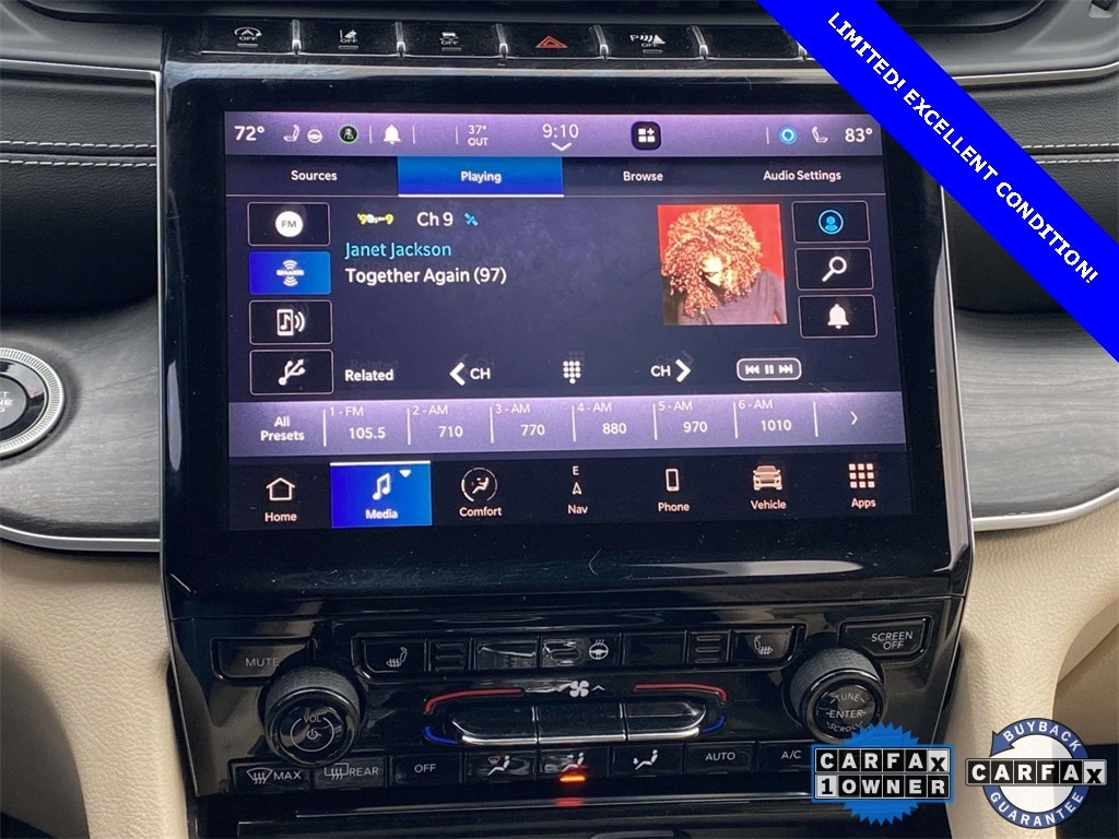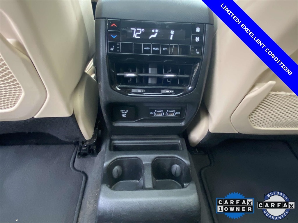 Check out all these great options Quick Order Package 22E, GPS Navigation, 10.1" Touchscreen Display, 3.45 Rear Axle Ratio, 3rd row seats: split-bench, 4-Wheel Disc Brakes, 506 Watt Amplifier, 6 Speakers, 9 Amplified Speakers w/Subwoofer, ABS brakes, Air Conditioning, Alloy wheels, AM/FM radio: SiriusXM w/360L, Anti-whiplash front head restraints, Apple CarPlay, Apple CarPlay/Android Auto, Audio memory, Auto High-beam Headlights, Automatic temperature control, Brake assist, Bumpers: body-color, Capri Leather Seats, Compass, Connected Travel & Traffic Services, Connectivity - US/Canada, Delay-off headlights, Disassociated Touchscreen Display, Driver door bin, Driver vanity mirror, Dual front impact airbags, Dual front side impact airbags, Dual-Pane Panoramic Sunroof, Electronic Stability Control, Emergency communication system, Four wheel independent suspension, Front anti-roll bar, Front Bucket Seats, Front Center Armrest w/Storage, Front dual zone A/C, Front fog lights, Front reading lights, Fully automatic headlights, Garage door transmitter, Google Android Auto, GPS Antenna Input, HD Radio, Heated door mirrors, Heated front seats, Heated rear seats, Heated steering wheel, Illuminated entry, Integrated Center Stack Radio, Integrated Voice Command w/Bluetooth, Interior Rear Facing Camera, Knee airbag, Leather steering wheel, Low tire pressure warning, Manual Fold Seatbacks, Memory seat, Normal Duty Suspension, Occupant sensing airbag, Outside temperature display, Overhead airbag, Overhead console, Panic alarm, ParkView Rear Back-Up Camera, Passenger door bin, Passenger vanity mirror, Power door mirrors, Power driver seat, Power Liftgate, Power passenger seat, Power steering, Power windows, Radio data system, Radio: Uconnect 5 Nav w/10.1" Display, Radio: Uconnect 5 w/8.4" Display, Rear air conditioning, Rear anti-roll bar, Rear reading lights, Rear window defroster, Rear window wiper, Reclining 3rd row seat, Remote keyless entry, Roof rack: rails only, Security system, SiriusXM Satellite Radio, SiriusXM w/360L, Speed control, Speed-Sensitive Wipers, Split folding rear seat, Spoiler, Steering wheel mounted audio controls, Tachometer, Telescoping steering wheel, Tilt steering wheel, Traction control, Trip computer, Turn signal indicator mirrors, USB Host Flip, Variably intermittent wipers, Voltmeter, and Wheels: 18" x 8.0" Fully Painted Aluminum 2.