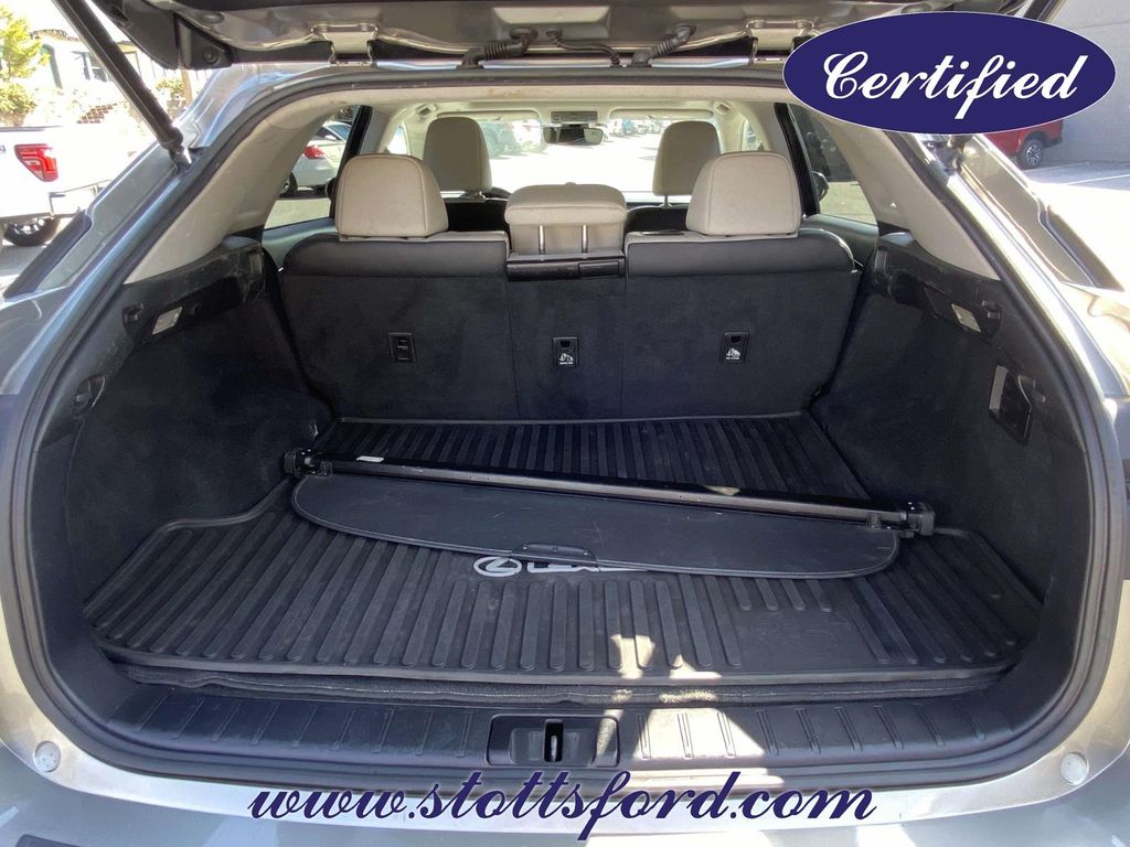 Check out all these great options Automatic temperature control, Front dual zone A/C, NuLuxe Seat Trim, Power driver seat, Power Liftgate, Power passenger seat, Wheels: 18" x 8" 7-Spoke Aluminum, 2.277 Axle Ratio, 4-Wheel Disc Brakes, 9 Speakers, ABS brakes, Air Conditioning, Alloy wheels, Aluminum Roof Rails, AM/FM radio: SiriusXM, Anti-whiplash front head restraints, Auto High-beam Headlights, Auto-dimming Rear-View mirror, Backup Monitor, Bumpers: body-color, CD player, Compass, Delay-off headlights, Driver door bin, Driver vanity mirror, Dual front impact airbags, Dual front side impact airbags, Electronic Stability Control, Emergency communication system: Safety Connect, Exterior Parking Camera Rear, Four wheel independent suspension, Front anti-roll bar, Front Bucket Seats, Front Center Armrest, Front fog lights, Front reading lights, Fully automatic headlights, Garage door transmitter: HomeLink, Genuine wood console insert, Genuine wood door panel insert, Heated door mirrors, Illuminated entry, Knee airbag, Leather Shift Knob, Leather steering wheel, Low tire pressure warning, Occupant sensing airbag, Outside temperature display, Overhead airbag, Overhead console, Panic alarm, Passenger door bin, Passenger vanity mirror, Power door mirrors, Power steering, Power windows, Radio data system, Radio: AM/FM/CD Lexus Display Audio, Rain sensing wipers, Rear anti-roll bar, Rear reading lights, Rear seat center armrest, Rear side impact airbag, Rear window defroster, Rear window wiper, Remote keyless entry, Security system, Speed control, Speed-sensing steering, Split folding rear seat, Spoiler, Steering wheel mounted audio controls, Tachometer, Telescoping steering wheel, Tilt steering wheel, Traction control, Trip computer, Turn signal indicator mirrors, and Variably intermittent wipers.