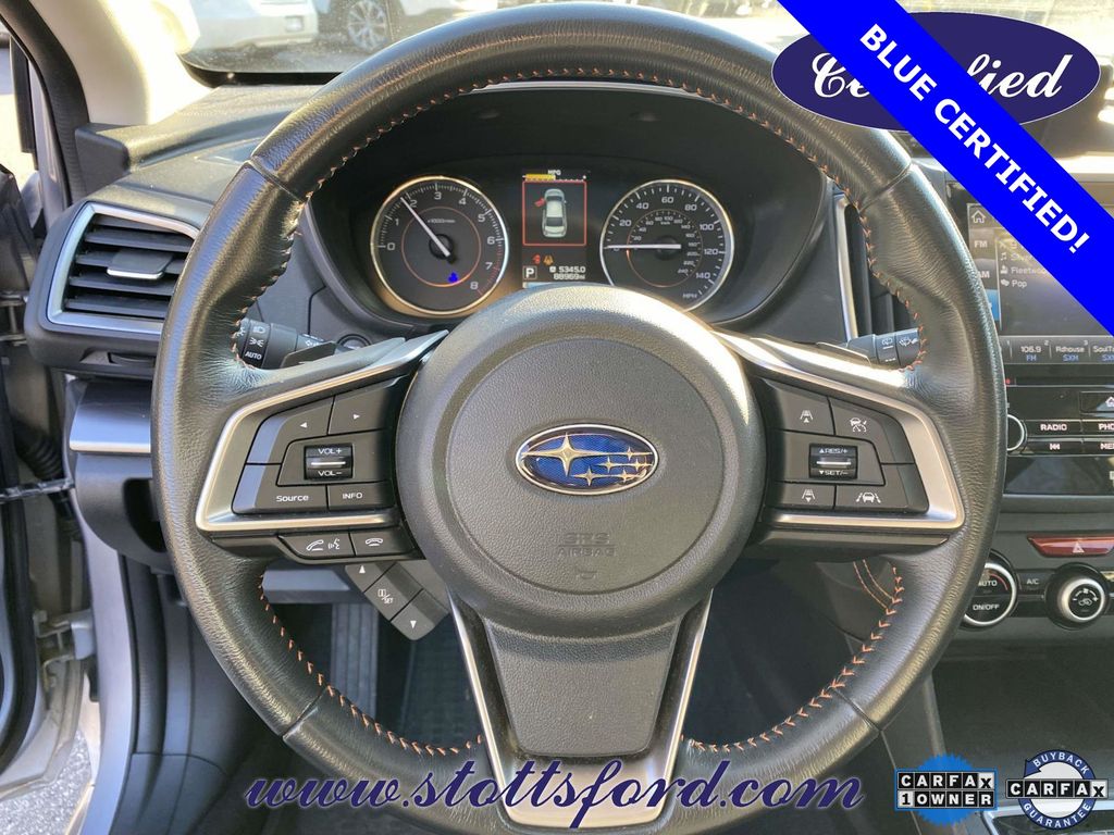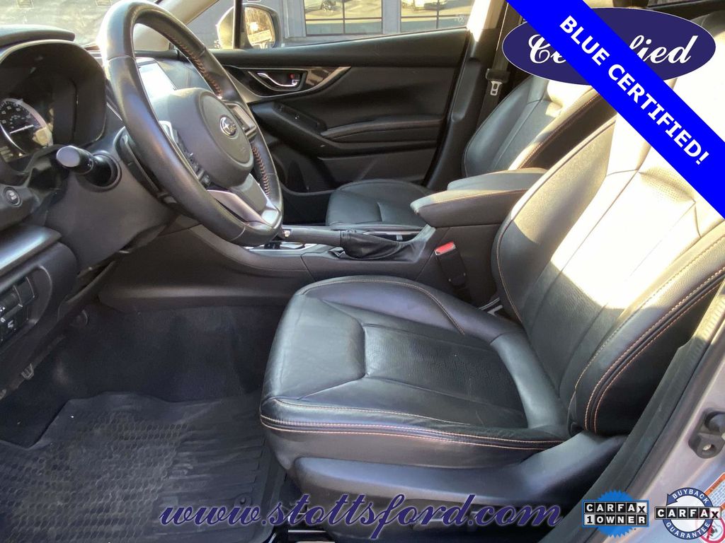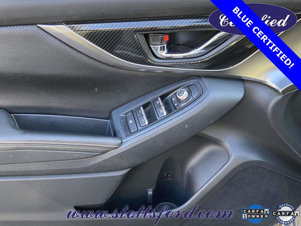 Check out all these great options Standard Model, Apple CarPlay/Android Auto, Brake assist, Electronic Stability Control, Exterior Parking Camera Rear, Heated front seats, Leather-Trimmed Upholstery, Power driver seat, Wheels: 18" x 7.0J Aluminum Alloy, 3.90 Axle Ratio, 4-Wheel Disc Brakes, 6 Speakers, ABS brakes, Air Conditioning, Alloy wheels, AM/FM radio: SiriusXM, Automatic temperature control, Bumpers: body-color, CD player, Driver door bin, Driver vanity mirror, Dual front impact airbags, Dual front side impact airbags, Emergency communication system: STARLINK, Four wheel independent suspension, Front anti-roll bar, Front Bucket Seats, Front Center Armrest, Front fog lights, Front reading lights, Fully automatic headlights, Heated door mirrors, Heated Front Bucket Seats, Illuminated entry, Knee airbag, Leather Shift Knob, Low tire pressure warning, Occupant sensing airbag, Outside temperature display, Overhead airbag, Overhead console, Panic alarm, Passenger door bin, Passenger vanity mirror, Power door mirrors, Power steering, Power windows, Radio data system, Radio: Subaru Starlink 8.0" Multimedia Plus System, Rear anti-roll bar, Rear seat center armrest, Rear window defroster, Rear window wiper, Remote keyless entry, Roof rack: rails only, Security system, Speed control, Speed-sensing steering, Split folding rear seat, Spoiler, Steering wheel mounted audio controls, Subaru Starlink Smartphone Integration, Tachometer, Telescoping steering wheel, Tilt steering wheel, Traction control, Trip computer, Turn signal indicator mirrors, and Variably intermittent wipers.