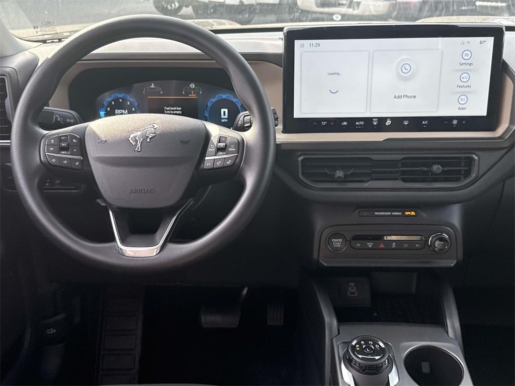 Inside, the cabin offers smart comfort and functionality with durable cloth seating, a digital instrument cluster, automatic climate control, and a 60/40 split-fold rear seat for flexible cargo space. Technology comes standard with SYNC 4 and a large 13.2-inch touchscreen, featuring wireless Apple CarPlay and Android Auto for seamless smartphone integration.