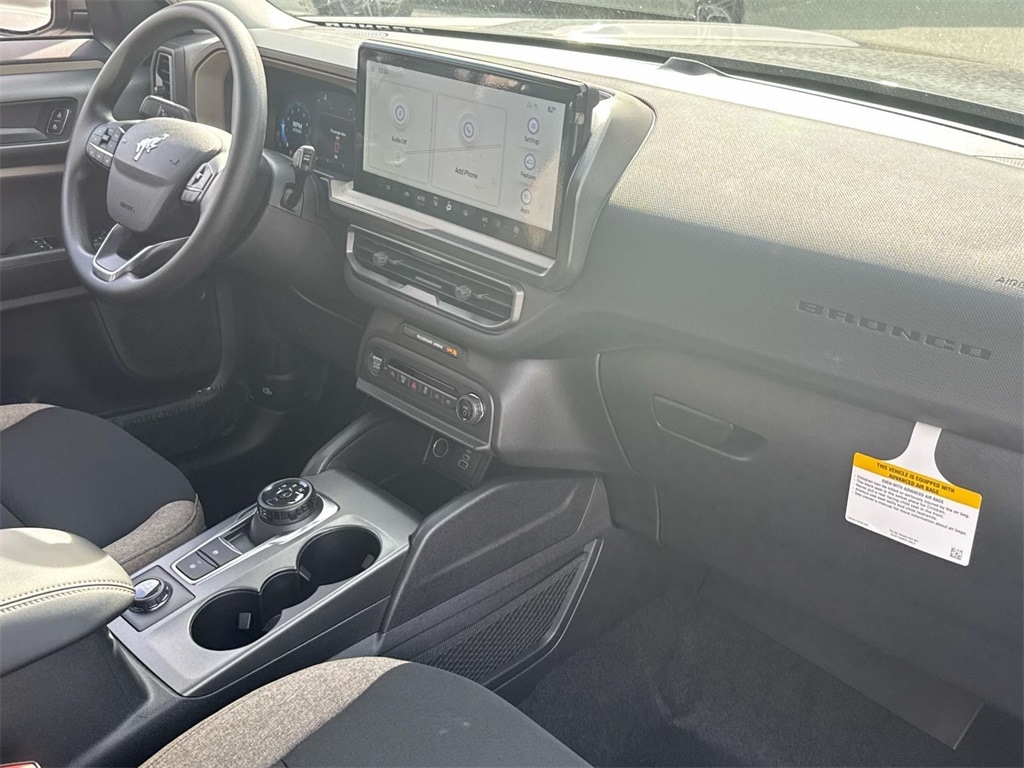 Inside, the Bronco Sport offers smart comfort with durable cloth seating, a digital instrument cluster, automatic climate control, and a versatile 60/40 split-fold rear seat for flexible cargo space. Stay connected on every drive with SYNC 4 and a large 13.2-inch touchscreen, featuring wireless Apple CarPlay and Android Auto, plus FordPass Connect for remote access and vehicle monitoring.