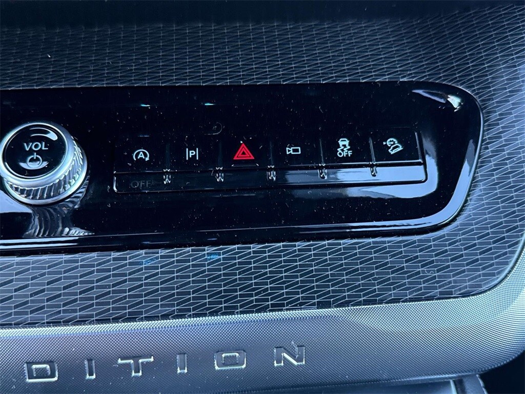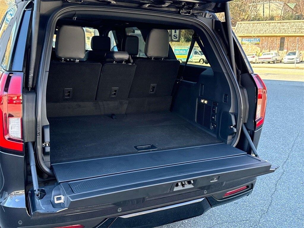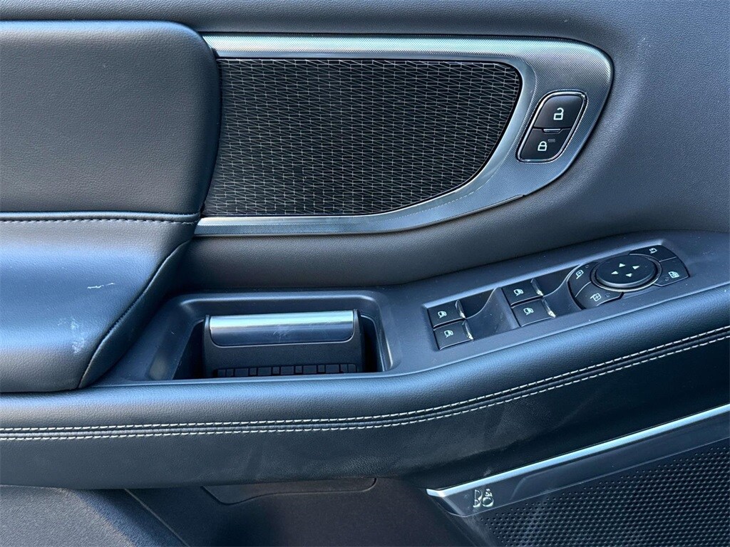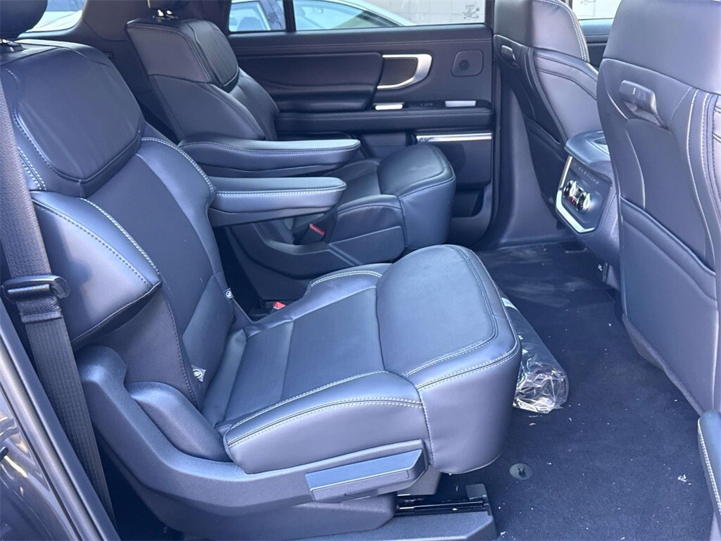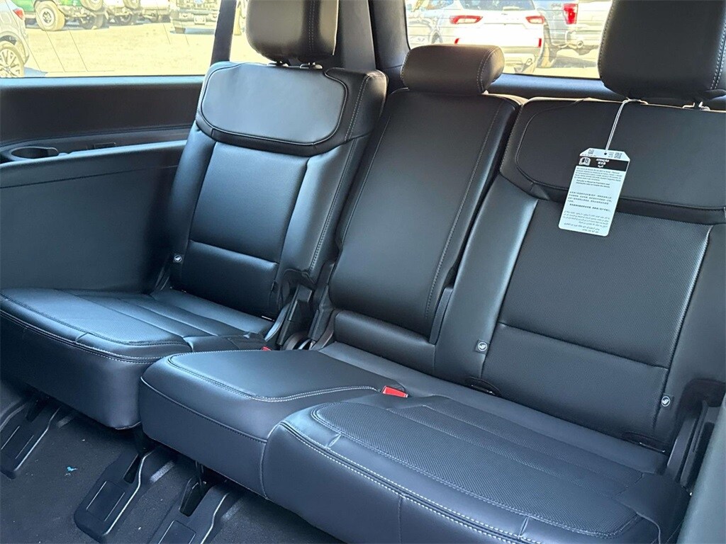 This Platinum model is finished in Dark Matter Gray Metallic with a Black Onyx leather-trimmed interior and seating for seven. Features include heated and ventilated front seats, second-row heated seats, panoramic Vista Roof, 24-inch panoramic display, and a 13.2-inch touchscreen. The Stealth Performance Package adds bold 22-inch wheels and enhanced styling.