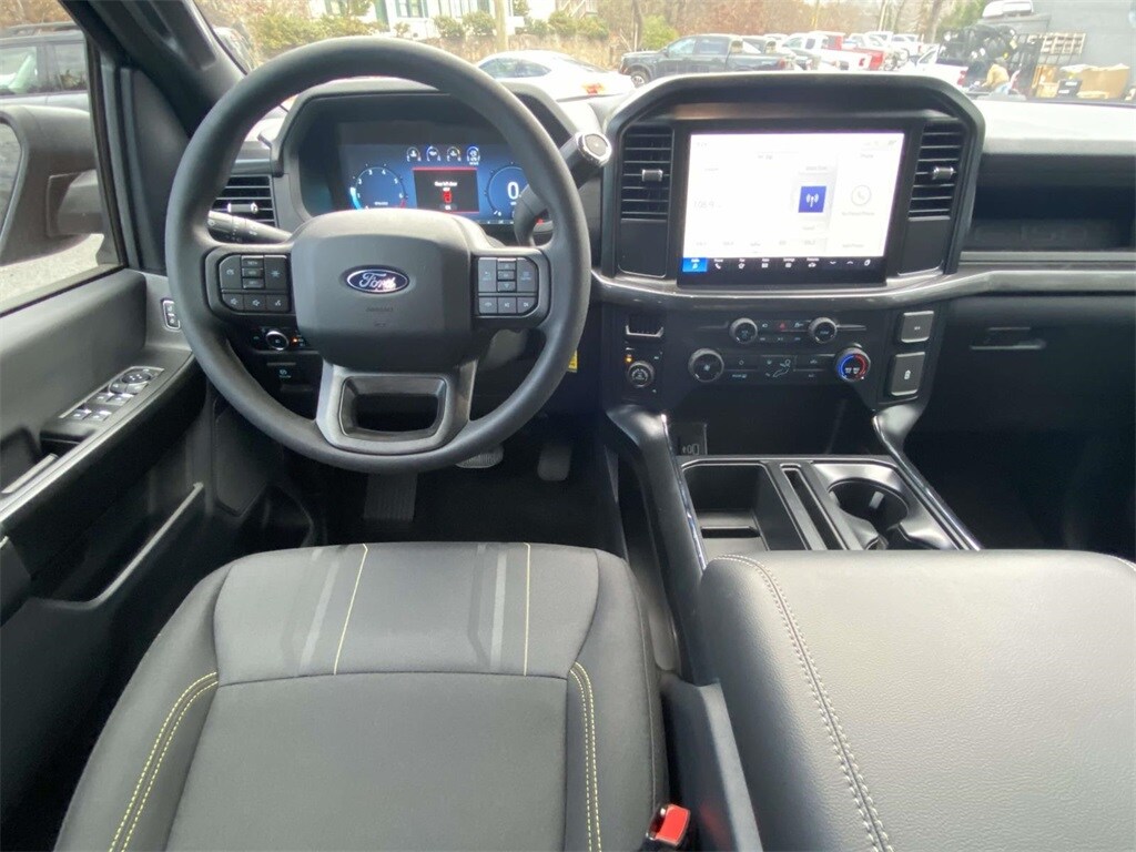Inside the spacious SuperCrew cabin, you'll find durable black STX cloth seating, cruise control, power windows and locks, and a clean, functional layout designed for everyday use. Technology is front and center with SYNC 4 and a 12-inch touchscreen, featuring wireless Apple CarPlay and Android Auto for seamless access to navigation, music, and apps.