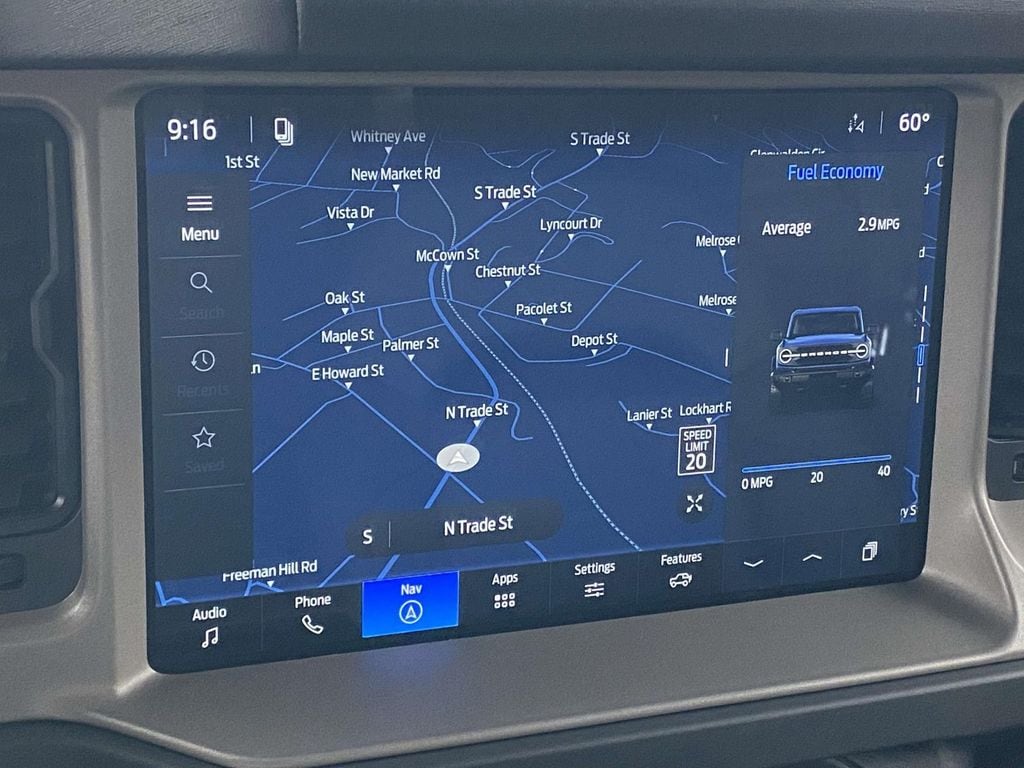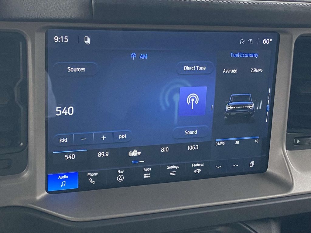 Check out all these great options Equipment Group 314A Lux Package (18" Bright Machined Aluminum Wheels, 360-Degree Camera, Adaptive Cruise Control, Evasive Steering Assist, Front Parking Sensors, Heated Leather-Trimmed/Vinyl Bucket Seats, Information on Demand Panel, and Sideview Mirrors), Ford Connectivity Package (1-Year Included), Sasquatch Package (High Clearance Fender Flares, High Clearance Suspension, Position-Sensitive Bilstein Shock Absorbers, and Wheels: 17" Matte Black Alloy), 4-Wheel Disc Brakes, 7 Speakers, ABS brakes, Air Conditioning, Alloy wheels, AM/FM radio: SiriusXM with 360L, AM/FM Stereo, Auto High-beam Headlights, Auto-dimming Rear-View mirror, Automatic temperature control, Brake assist, Carbonized Gray Molded-in-Color Hard Top, Compass, Connected Navigation, Delay-off headlights, Driver door bin, Driver vanity mirror, Dual front impact airbags, Dual front side impact airbags, Electronic Stability Control, Emergency communication system: 911 Assist, Engine Block Heater, Exterior Parking Camera Rear, Front anti-roll bar, Front Bucket Seats, Front Center Armrest, Front dual zone A/C, Front fog lights, Front reading lights, Front wheel independent suspension, Fully automatic headlights, Heated door mirrors, Heated front seats, Heated steering wheel, Illuminated entry, Integrated roll-over protection, Leather Shift Knob, Low tire pressure warning, Navigation system: Connected Navigation, Occupant sensing airbag, Outside temperature display, Overhead airbag, Overhead console, Panic alarm, Passenger door bin, Passenger vanity mirror, Power door mirrors, Power driver seat, Power passenger seat, Power steering, Power windows, Radio data system, Rear seat center armrest, Rear-Window Defroster and Washer, Remote keyless entry, Security system, SiriusXM with 360L, Speed control, Split folding rear seat, Steering wheel mounted audio controls, SYNC 4, Tachometer, Telescoping steering wheel, Tilt steering wheel, Traction control, Trip computer, Variably intermittent wipers, and Voltmeter.