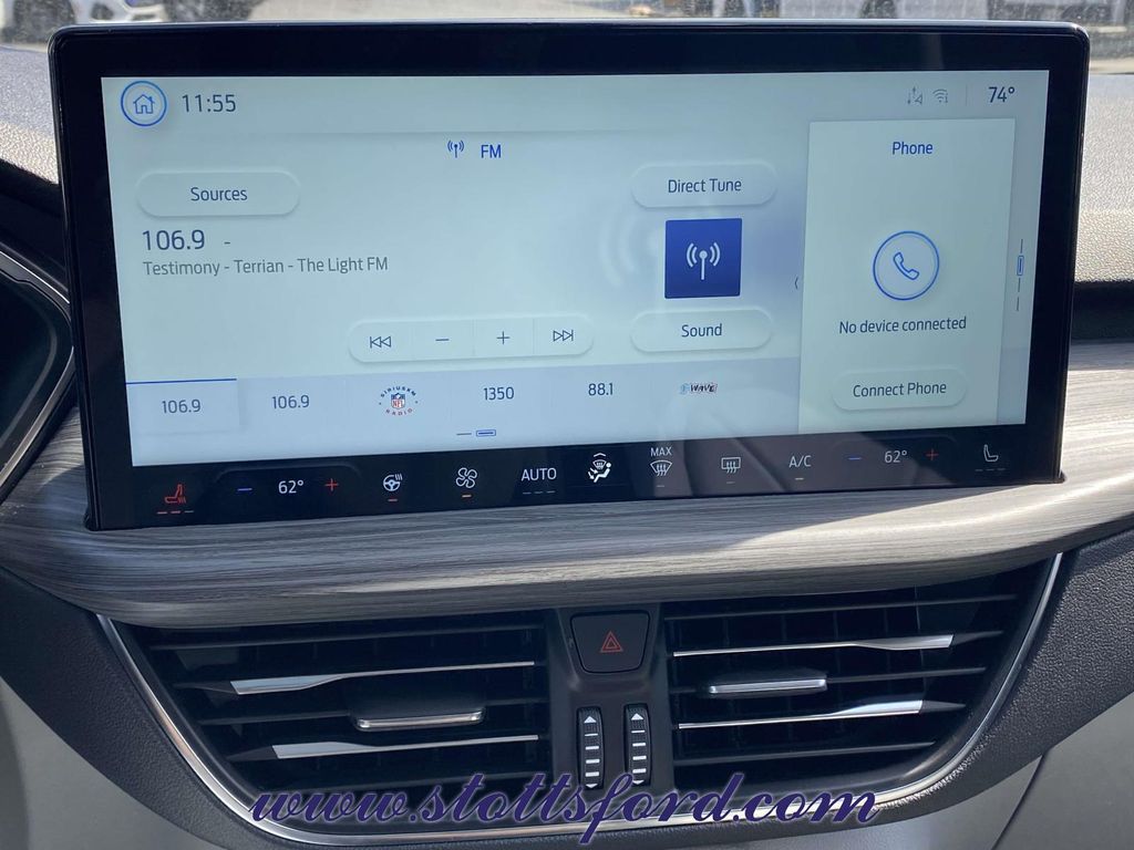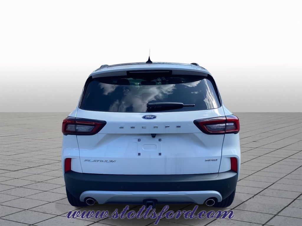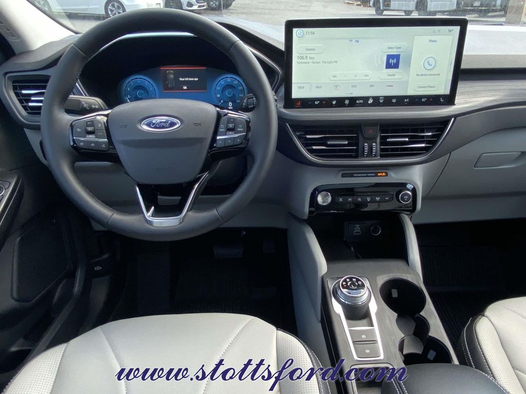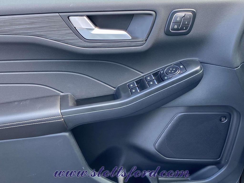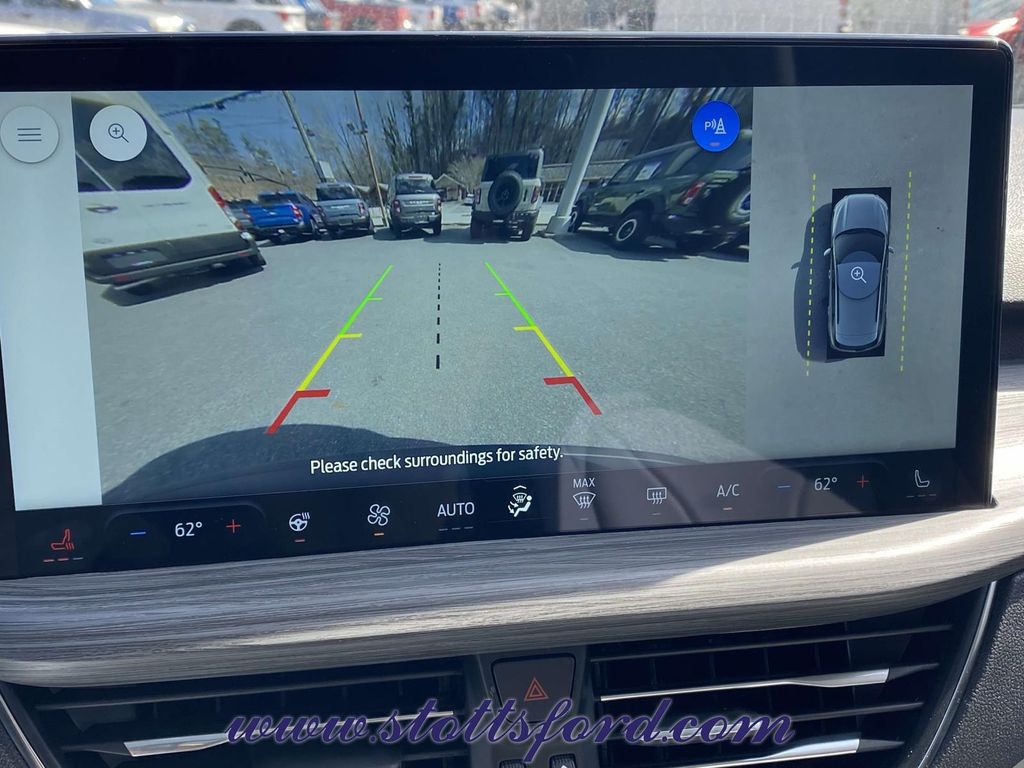 The Escape Platinum's premium interior features ActiveX-trimmed heated front sport contour bucket seats with quilting design, a heated steering wheel, and a 10-way power driver's seat with memory. The SYNC 4 infotainment system, complete with Connected Navigation and a stunning B&O sound system, keeps you connected and entertained. Advanced safety technologies, including a 360-degree camera with split view, front and rear parking sensors, and Reverse Brake Assist, provide added peace of mind.