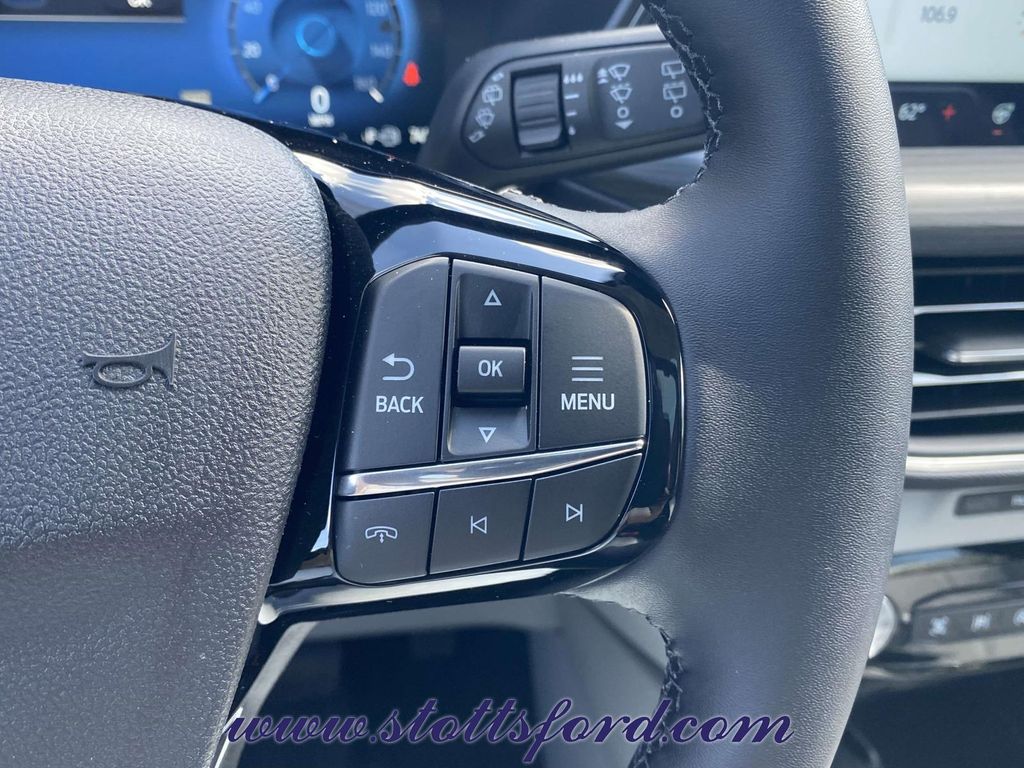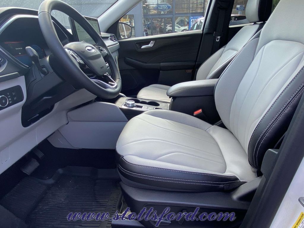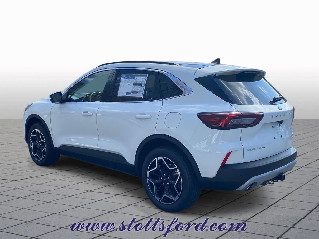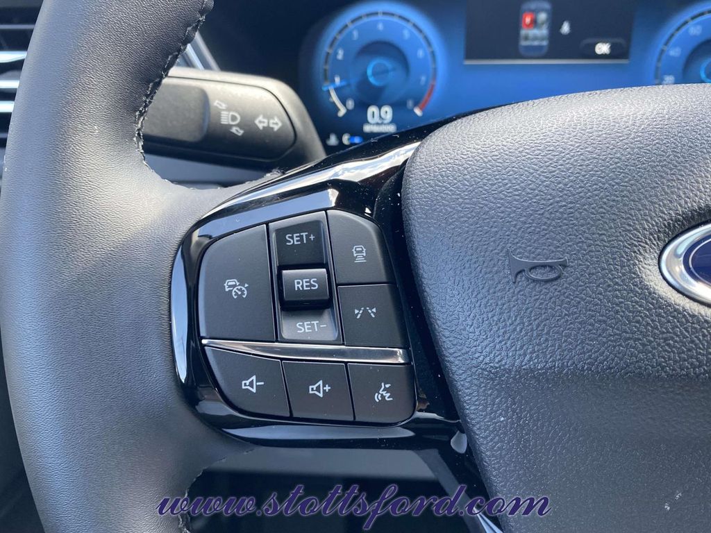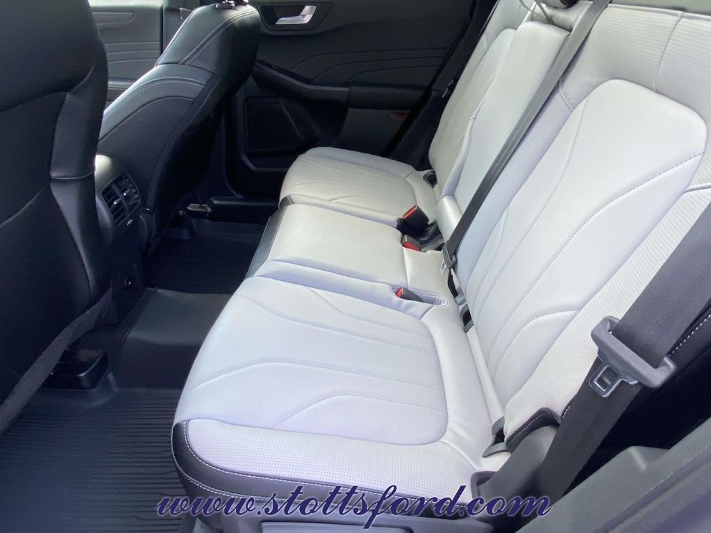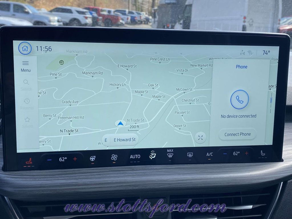 The Escape Platinum's premium interior features ActiveX-trimmed heated front sport contour bucket seats with quilting design, a heated steering wheel, and a 10-way power driver's seat with memory. The SYNC 4 infotainment system, complete with Connected Navigation and a stunning B&O sound system, keeps you connected and entertained. Advanced safety technologies, including a 360-degree camera with split view, front and rear parking sensors, and Reverse Brake Assist, provide added peace of mind.