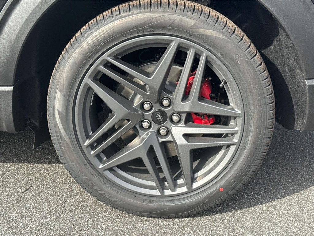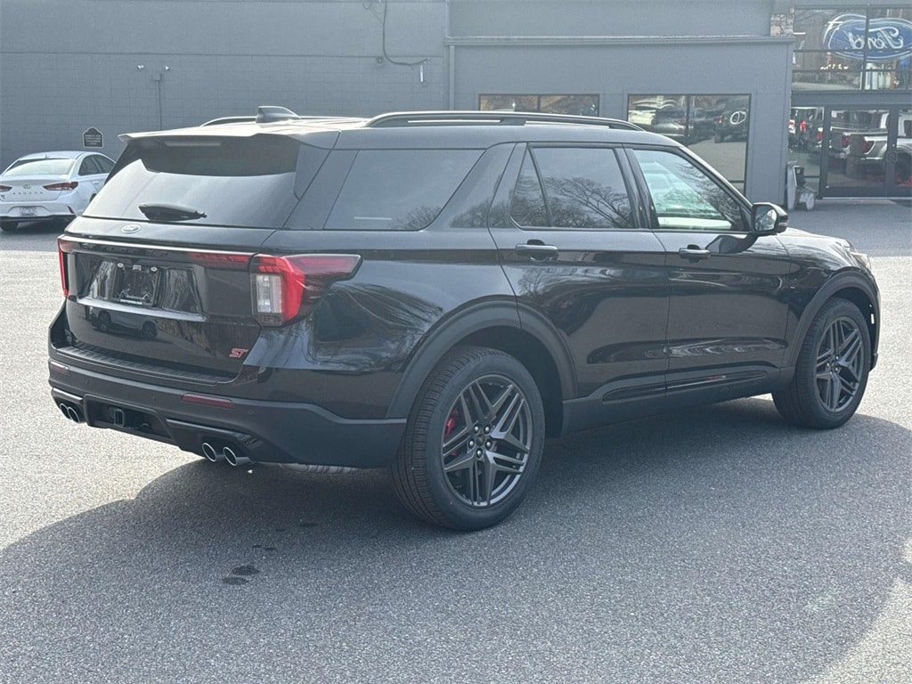 The Explorer ST stands out with 21-inch aluminum wheels, quad-tip dual exhaust, black mesh grille, ST badging, and a sport-tuned suspension engineered for responsive handling. The Class III Trailer Tow Package adds versatility, making it perfect for weekend adventures or towing gear.