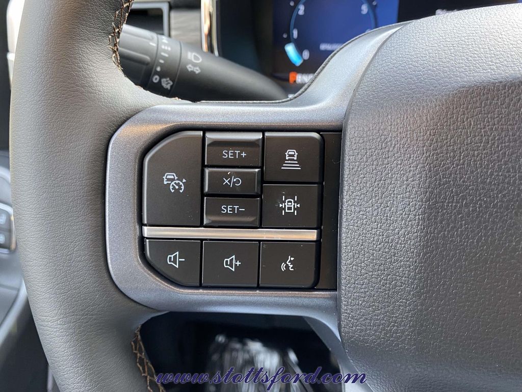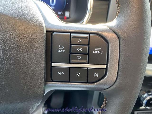 The Lariat 502A package adds premium upgrades like a 14-speaker B&O Unleashed sound system, mobile office package, wireless charging, and BlueCruise (trial) for hands-free highway driving.