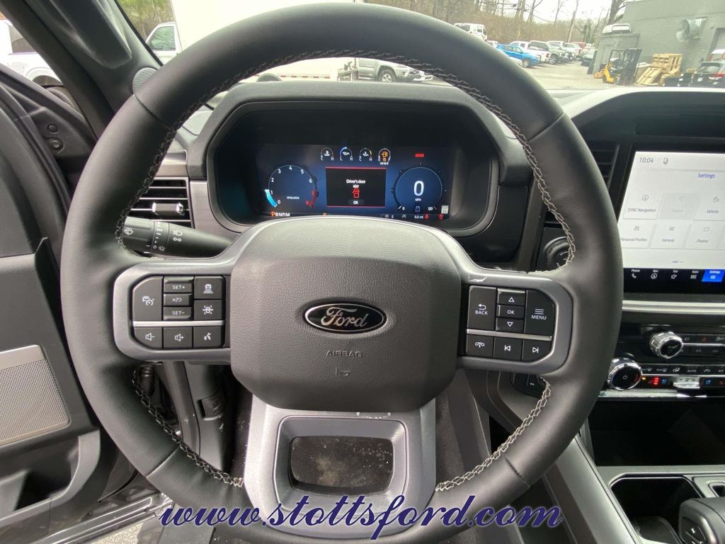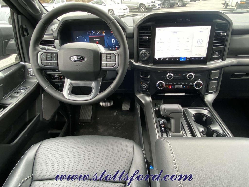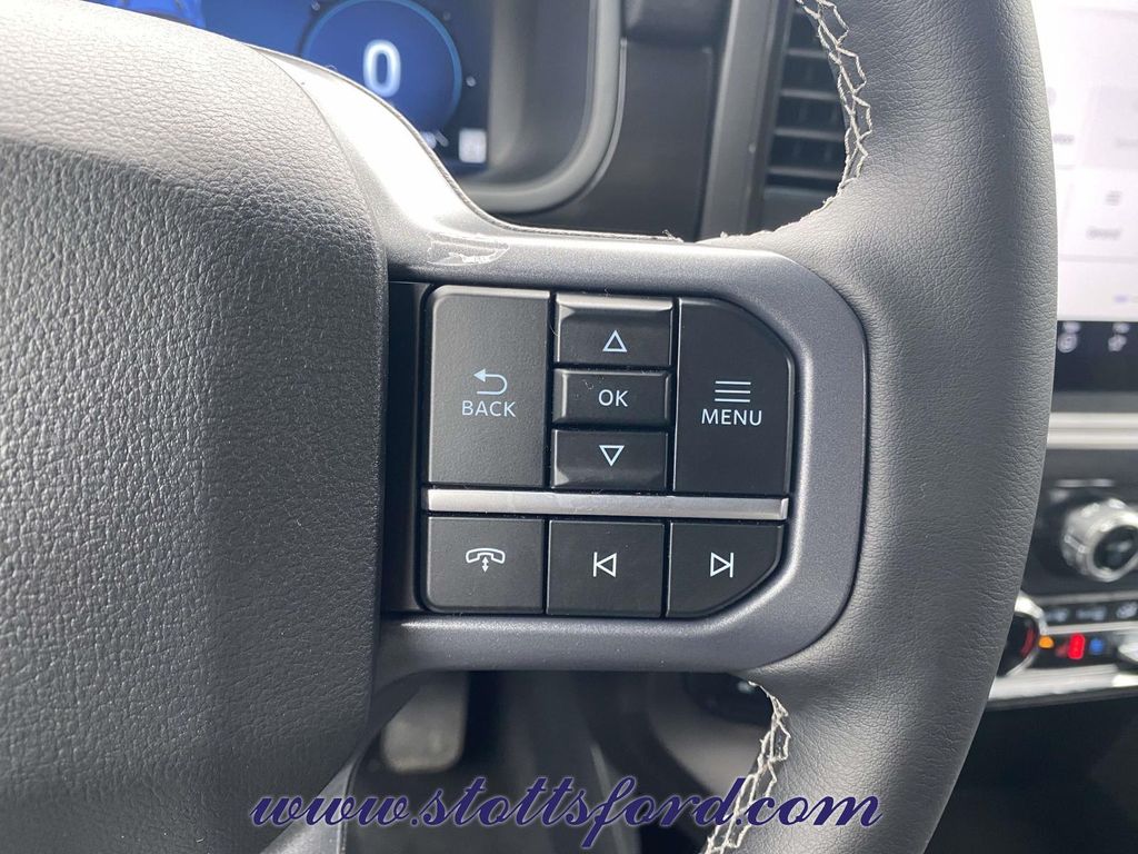 The Lariat Black Appearance Package adds a touch of bold style, with a sleek black grille, badging, and taillamp bezels, complementing the gray exterior. Inside, the ActiveX-trimmed bucket seats and dark interior appliques create a sophisticated and inviting atmosphere, while the SYNC 4 infotainment system with enhanced voice recognition keeps you connected and entertained on the go.