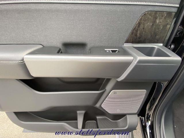 The bold Agate Black exterior is complemented by LED reflector headlamps, power running boards, and a twin-panel moonroof for an upscale touch. A power tailgate lock, tow hooks, and pickup box tie-down hooks add utility for every job.