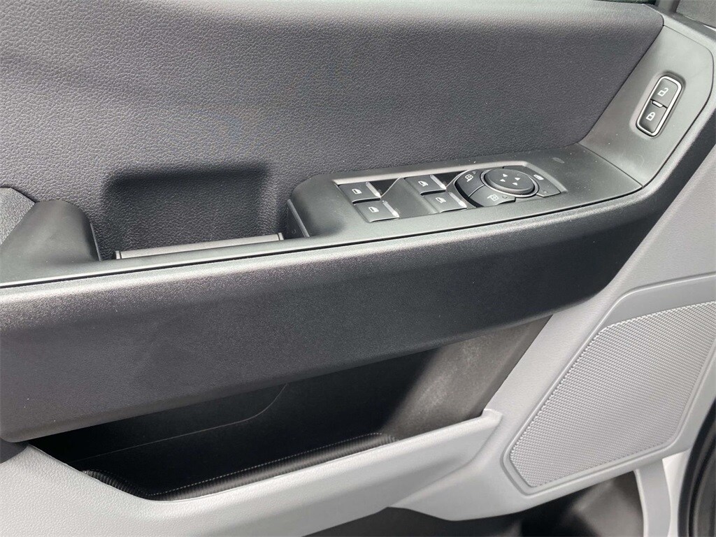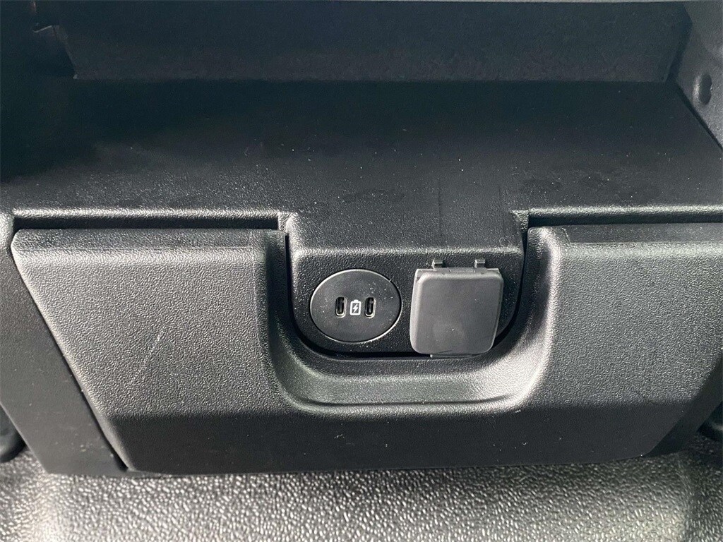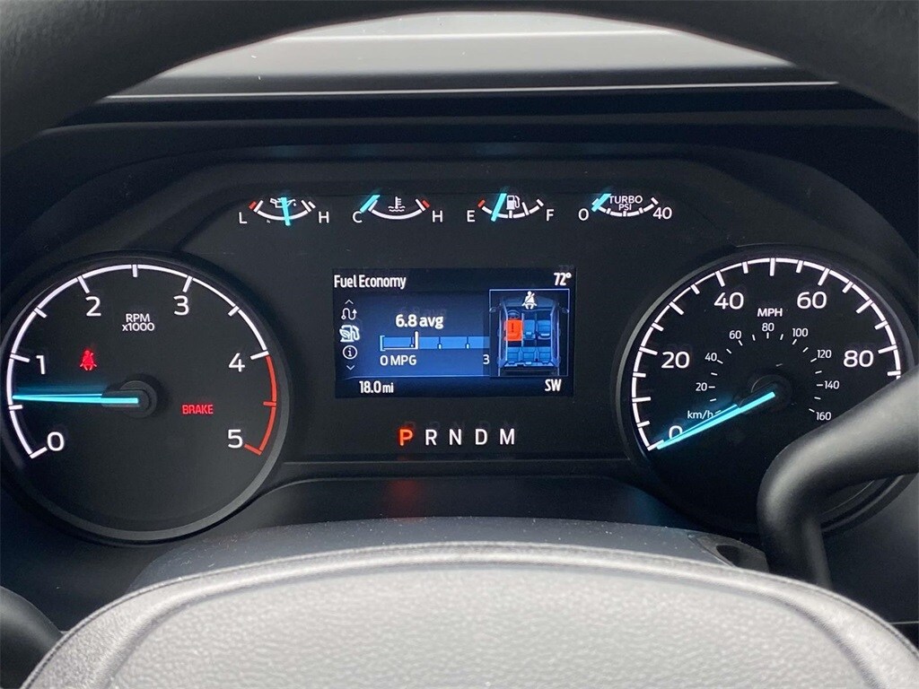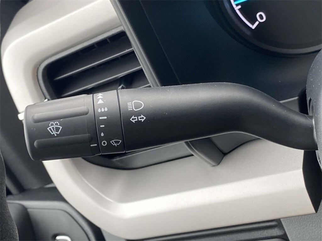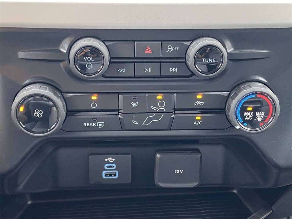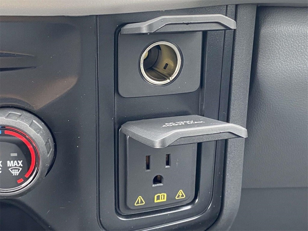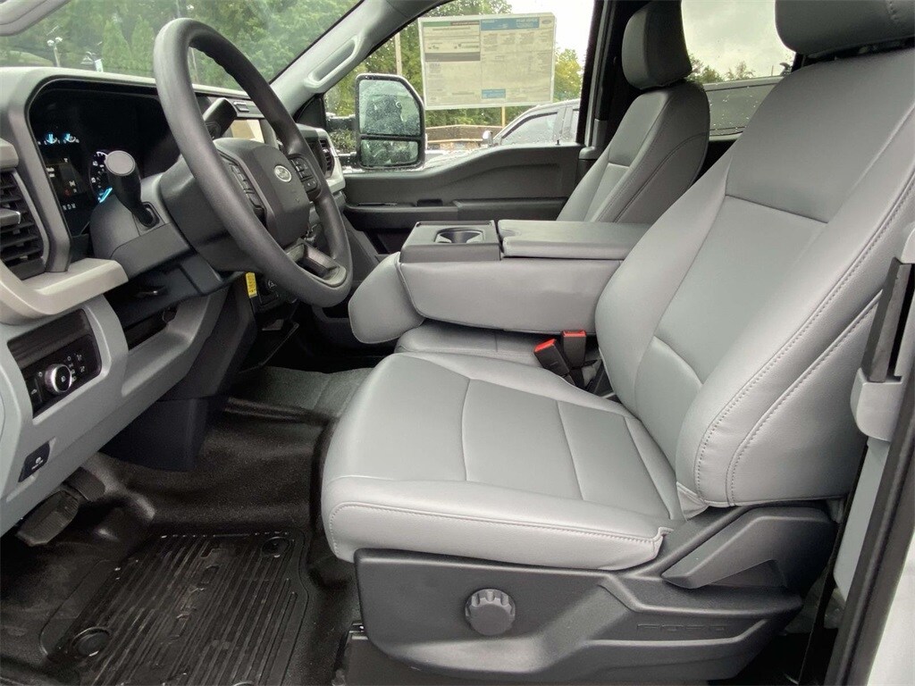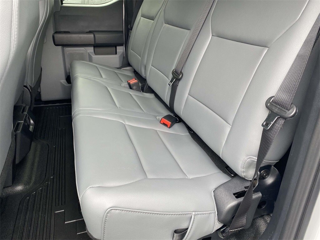 On the outside, the Oxford White exterior features trailer tow mirrors, power sliding rear window, platform running boards, and privacy glass. Inside, you'll find a durable Medium Dark Slate vinyl interior with manual lumbar support, SYNC 4 with 8" touchscreen, and a 120V/400W outlet for on-the-job convenience.