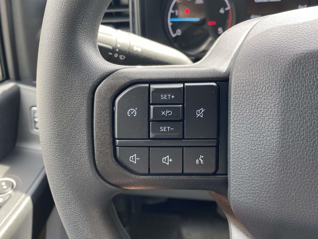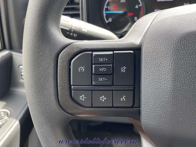 Inside, the cabin is designed for durability and functionality with Medium Dark Slate vinyl seating, manual air conditioning, 4.2" productivity screen, and SYNC4 with 8" touchscreen. Convenience features include remote start, keyless entry, power locks and windows, and tilt/telescoping steering with audio controls.