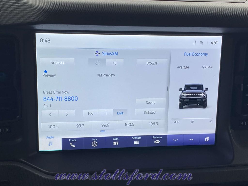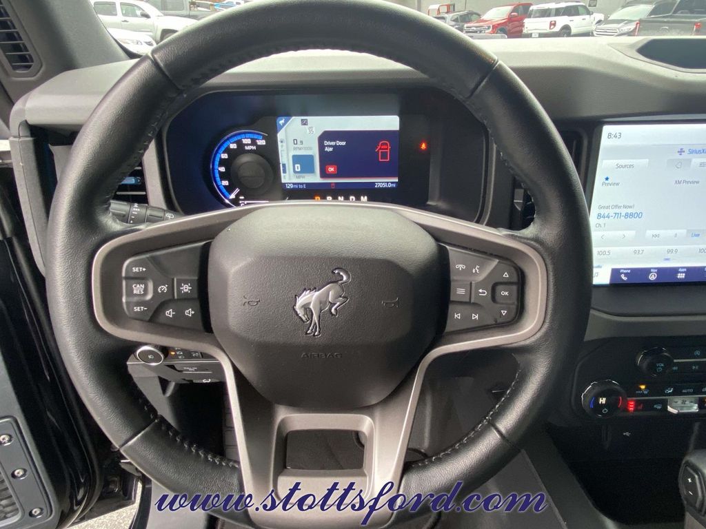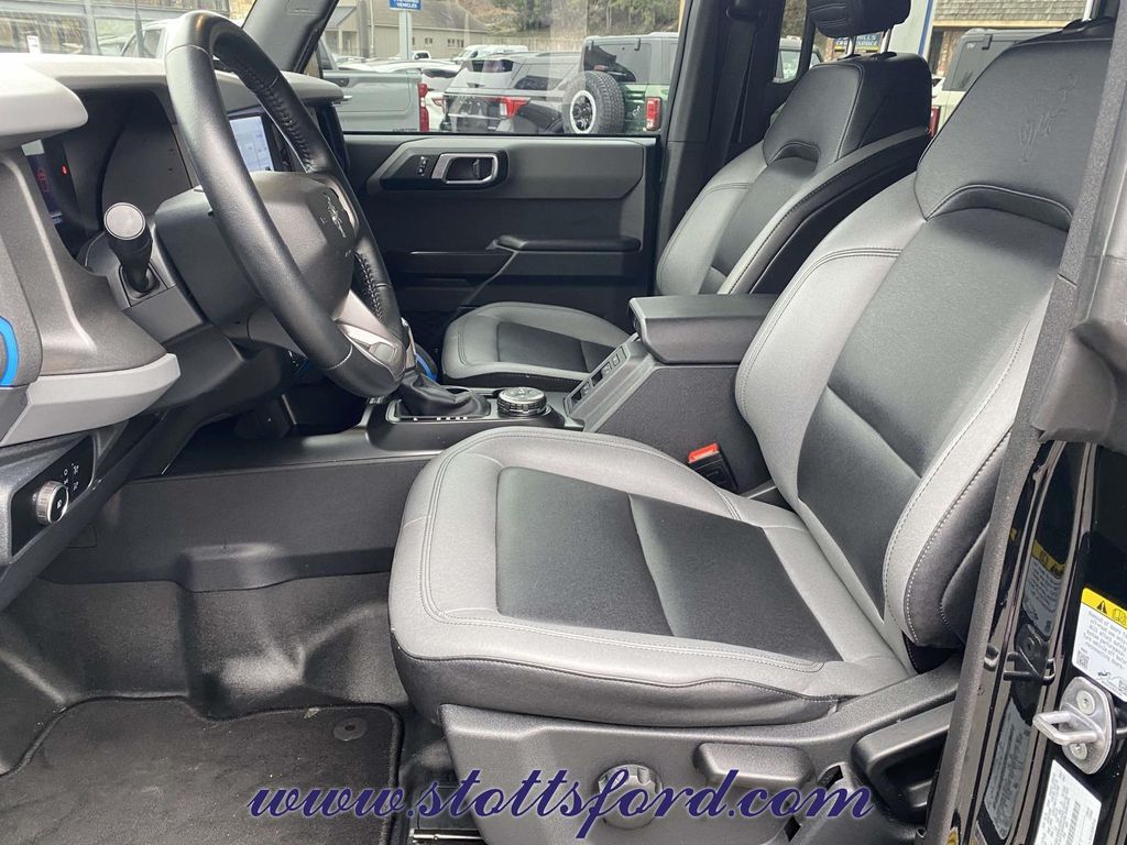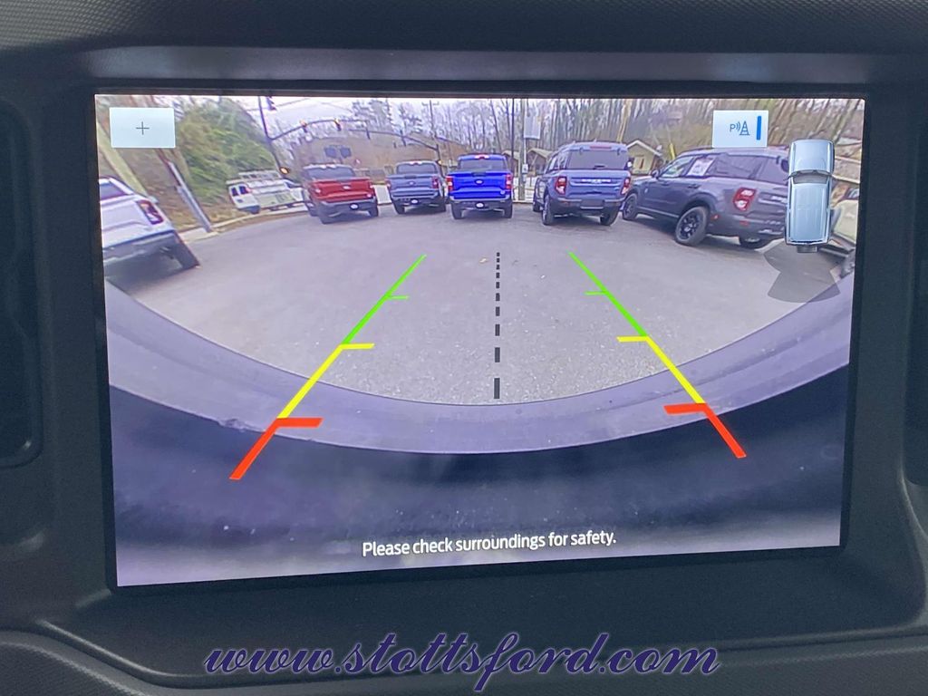 Check out all these great options Equipment Group 322A Mid Package (2-Door Intelligent Access w/Lock/Unlock, Ambient Footwell Lighting, Auto-Dimming Interior Rear-View Mirror, Connected Navigation, Dr & Pass Illuminated Sliding Visor Vanity Mirrors, Dual Smart Charging USB Ports, Dual-Zone Electronic Automatic Temperature Control, Front Row Heated Seats, Power Outlet - Back Side of Center Floor Console, Rear Parking Sensors, and Remote Start System), Exterior Parking Camera Rear, 4-Wheel Disc Brakes, 7 Speakers, ABS brakes, Air Conditioning, Alloy wheels, AM/FM radio: SiriusXM with 360L, AM/FM Stereo, Auto High-beam Headlights, Brake assist, Compass, Delay-off headlights, Driver door bin, Driver vanity mirror, Dual front impact airbags, Dual front side impact airbags, Electronic Stability Control, Emergency communication system: 911 Assist, Front anti-roll bar, Front Bucket Seats, Front Center Armrest, Front reading lights, Front wheel independent suspension, Fully automatic headlights, Heated door mirrors, Illuminated entry, Integrated roll-over protection, Leather Shift Knob, Low tire pressure warning, Marine Grade Vinyl Bucket Seats, Occupant sensing airbag, Outside temperature display, Overhead airbag, Overhead console, Panic alarm, Passenger door bin, Passenger vanity mirror, Power door mirrors, Power steering, Power windows, Radio data system, Remote keyless entry, Security system, SiriusXM Radio w/360L, Speed control, Split folding rear seat, Steering wheel mounted audio controls, SYNC 4, Tachometer, Telescoping steering wheel, Tilt steering wheel, Traction control, Trip computer, Variably intermittent wipers, and Wheels: 17" Black High Gloss-Painted Aluminum.