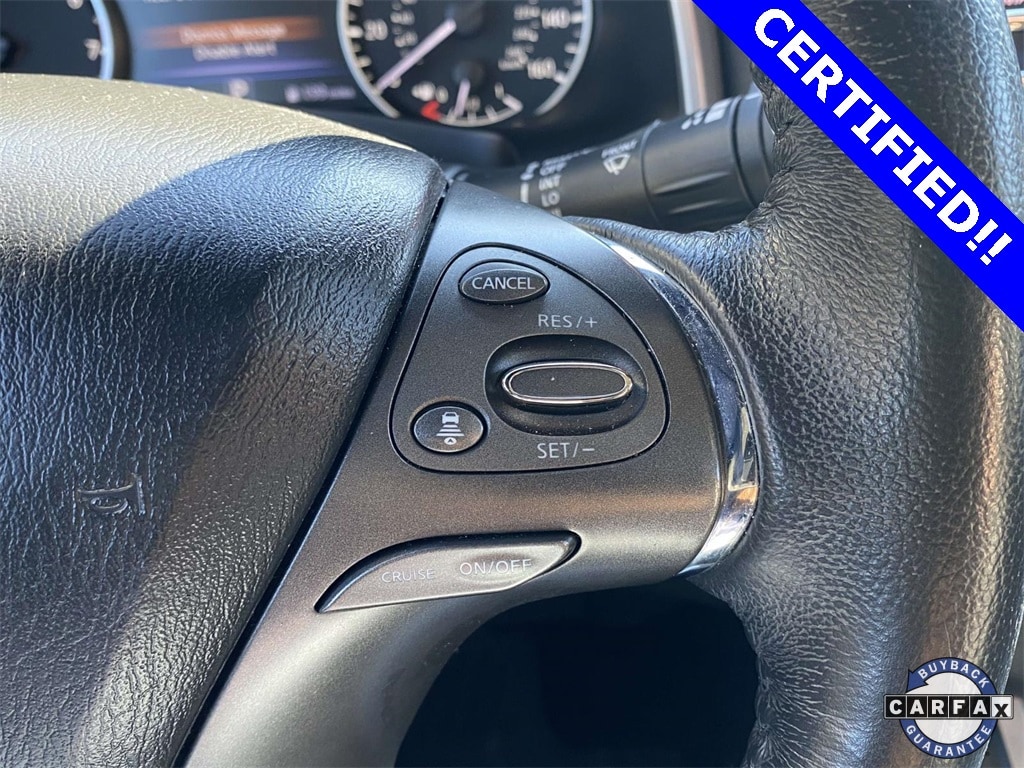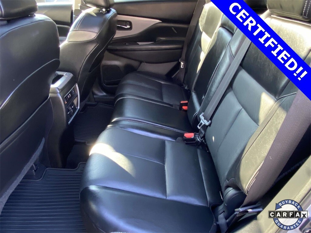 Check out all these great options SL Moonroof Package (Dual Panel Panoramic Moonroof), 11 Speakers, 4-Wheel Disc Brakes, 4.667 Axle Ratio, ABS brakes, Air Conditioning, Alloy wheels, AM/FM radio: SiriusXM, AM/FM/CD/MP3/WMA Audio System, Auto High-beam Headlights, Auto-dimming Rear-View mirror, Automatic temperature control, Blind Spot Warning, Brake assist, Bumpers: body-color, Carpeted Floor Mats & Carpeted Cargo Mat, CD player, Child-Seat-Sensing Airbag, Delay-off headlights, Driver door bin, Driver vanity mirror, Dual front impact airbags, Dual front side impact airbags, Electronic Stability Control, Exterior Parking Camera Rear, Four wheel independent suspension, Front anti-roll bar, Front Bucket Seats, Front Center Armrest, Front dual zone A/C, Front fog lights, Front reading lights, Fully automatic headlights, Garage door transmitter: HomeLink, Heated door mirrors, Heated Front Bucket Seats, Heated front seats, Heated rear seats, Heated steering wheel, Illuminated entry, Illuminated Kick Plates, Illuminated Kick Plates (PIO), Knee airbag, Leather-Appointed Seat Trim, Low tire pressure warning, Memory seat, Navigation system: NissanConnect Navigation, NissanConnect featuring Apple CarPlay and Android Auto, Occupant sensing airbag, Outside temperature display, Overhead airbag, Overhead console, Panic alarm, Passenger door bin, Passenger vanity mirror, Power door mirrors, Power driver seat, Power Liftgate, Power passenger seat, Power steering, Power windows, Radio data system, Rear anti-roll bar, Rear Bumper Protector, Rear reading lights, Rear seat center armrest, Rear side impact airbag, Rear window defroster, Rear window wiper, Remote keyless entry, Roof rack: rails only, Security system, Speed control, Speed-sensing steering, Speed-Sensitive Wipers, Splash Guards, Split folding rear seat, Spoiler, Steering wheel mounted audio controls, Tachometer, Telescoping steering wheel, Tilt steering wheel, Traction control, Trip computer, Turn signal indicator mirrors, Variably intermittent wipers, and Wheels: 20" Machined Aluminum-Alloy.